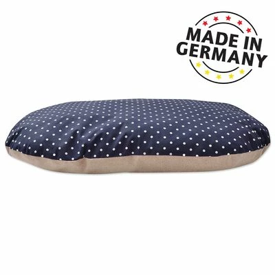 Ergonomische slaapplek voor honden. Geschikt voor oudere en zieke honden die last hebben van spierspanning. Biologisch spelt, ontspant de spieren en ontlast de gewrichten. Kleur: donkerblauw/crème.