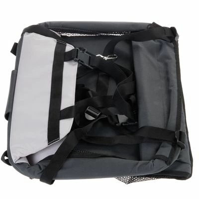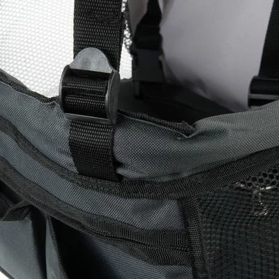 De stevige constructie biedt veiligheid, zelfs wanneer u een scherpe bocht neemt of een ongeplande rem-manoeuvre uitvoert. Een korte riem met karabijnhaak zorgt er bovendien voor dat uw lieveling niet uit de mand kan springen. De uitneembare bodem is net als de achterwand uitgerust met een schuimstof-bekleding. Zodat uw viervoetige bijrijder comfortabel kan zitten tijdens langere ritten. Erg handig: dankzij een zak met ritssluiting en drie zakken aan de voorkant heeft u spullen snel bij de hand. En wanneer u op uw bestemming aankomt en te voet verder gaat, kan het hondenautostoeltje ook dienst doen als draagmand of u kunt hem plaatsbesparend inklappen.Â