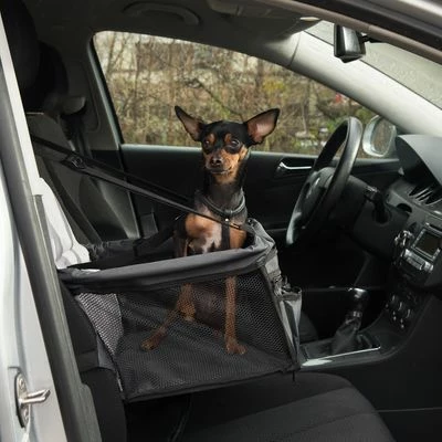 - Autostoel voor honden tot 13 kg voor bevestiging aan de bijrijderstoel of achterbank in de auto