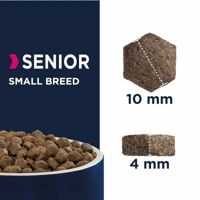 Vitaliserend droogvoer voor seniorenhonden van kleine rassen vanaf 11 jaar, receptuur ter ondersteuning van een actief leven, bevordert gezonde gewrichten & botten.