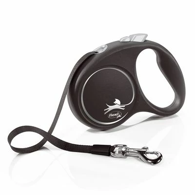 Met de flexi Black Design Tape lijn beschik je over een chic en betrouwbaar accessoires voor uitstapjes met jouw hond. De rollijn is bijna compleet zwart met opvallende zilveren details op de remknop en het logo.