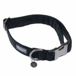 Hoogwaardige hondenhalsband, in stijlvolle fluwelen look, met matzwarte metalen elementen, traploos verstelbaar, weerbestendig, met D-ring, gemaakt van polyester en nylon, kleur: zwart.