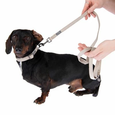 De 200 cm-variant van de riem heeft 2 karabijnhaken en 3 ringen om de lengte mee aan te passen.