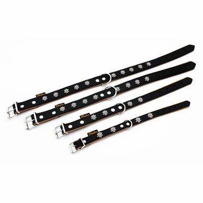 Met de Heim Edelweiß halsband is met zijn hoogwaardige, zwarte en natuurlijke leren look en de elegante motieven een echte blikvanger!