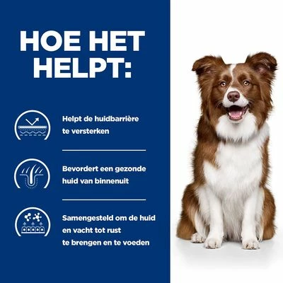 Compleet dieetvoer voor volwassen honden met huidziekte of haaruitval. Versterkt de huidbarriere tegen allergenen van buitenaf en draagt bij aan een gezonde huid.