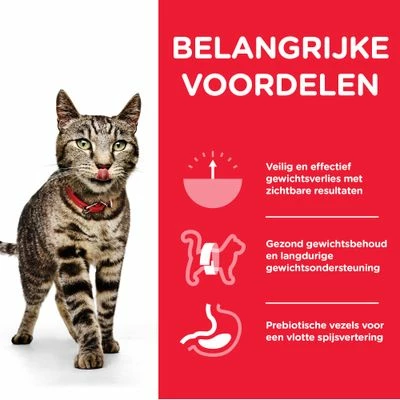 Overgewicht bij katten kan verschillende oorzaken hebben. Het meest voorkomende probleem is dat kateigenaren teveel voer geven en dat de meeste huiskatten te weinig bewegen. Echter kan overgewicht ook ontstaan door een verandering van de stofwisseling door sterilisatie, leeftijd of dankzij een genetische afwijking. Een streng dieet leid vaak tot frustratie bij de kat. Gewichtsverlies dankzij een dergelijke dieet heeft vaak het “jojo-effect” als gevolg. De uitkomst voor katten met overgewicht is de vetarme receptuur van Hill’s Science Plan Adult 1+ Perfect Weight. Dit zorgt ervoor dat jouw kat een verzadigt gevoel heeft na iedere maaltijd zonder hierbij te veel calorieën op te nemen.