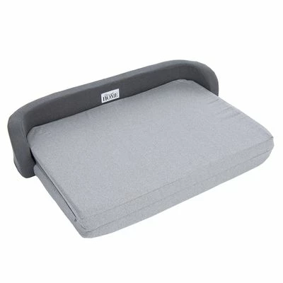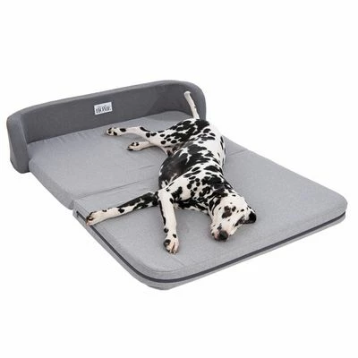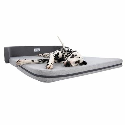 Zeer groot hondenbed. Perfect voor grote hondenrassen. Uitvouwbaar: 2 matrassen van orthopedisch memory foam. Hoge leuning. Dikke voering. Hoes afneembaar via ritssluiting. Kleur: lichtgrijs