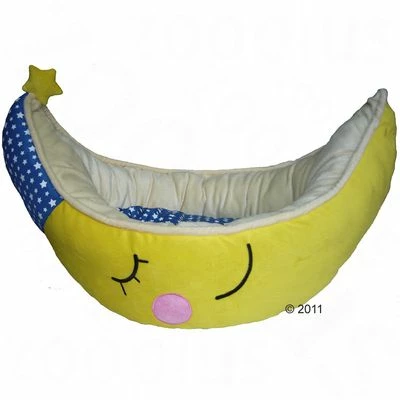 De dierenmand Maan is een hele bijzondere slaapplaats voor uw lieveling! Heerlijk om tegen de zachte vorm van de pluchen maan aan te gaan liggen – zo zijn zoete dromen gegarandeerd. De binnenkant van het mandje is met blauw-witte sterrenstof overtrokken en aan het hoofdeinde van de maan hangt een leuke pluchen ster.
