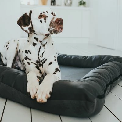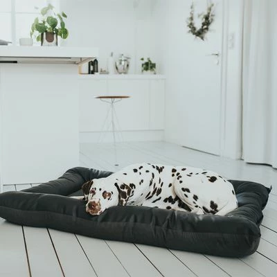Mooi kussen voor grote honden. Stevige, maar zachte bekleding in suèdelook. Tijdloos design met gevoerde rand. Afneembare hoes. Reiniging in de wasmachine. Kleur: zwart.Â