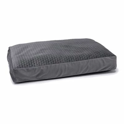 Fijn ligkussen met hoge rand voor honden. Met rits. Anti-slip bodem. Subtiel glanzend fluwelen oppervlak met doorgestikt patroon. Hoes afneembaar & wasbaar in machine. Kleur: donkergrijs.