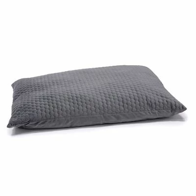 Heerlijk loungekussen voor honden. Subtiel glanzend fluwelen oppervlak met doorgestikt patroon. Hoes afneembaar met rits & machinewasbaar. Hoog ligcomfort. Kleur: donkergrijs. Moderne look.