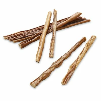 100% voorzichtig gedroogde natuurlijke runderdarm voor tussendoor. Ook geschikt voor allergische en gevoelige honden omdat er geen kleurstoffen, geurstoffen en conserveermiddelen in zitten. Vanwege de elastische structuur splinteren de ongeveer 20 cm lange stokjes niet, maar ondersteunen ze het reinigen van de tanden en het versterken van de kauwspieren.