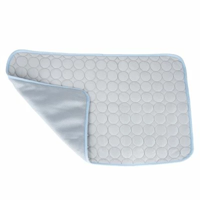 Koel voor katten en honden. Bevat koelgel & werkt zonder elektriciteit. Speciale vezels voeren de warmte af. Design doet denken aan luchtbellen in water. Kleur: grijs/blauw.