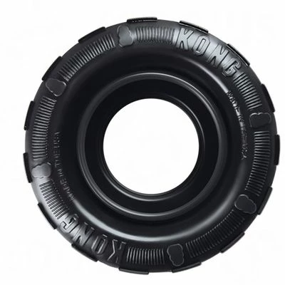 KONGÂ hondenspeelgoed in de vorm van een band die gevuld kan worden met snacks. De band springt alle kanten op en is ideaal om mee te spelen en kauwen. Gemaakt van natuurlijk rubber.