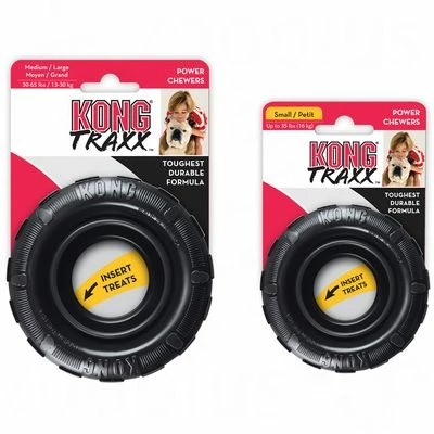 Traxx het rubberen speeltje van KONGÂ is gemaakt van natuurlijk en duurzaam rubber. Het is een zeer robuust speeltje. Dankzij de rubberen cirkel kan jouw hond het speeltje gemakkelijk dragen. Door de elastische eigenschap van rubber heeft jouw hond hier uren plezier mee. Het speeltje kan alle kanten op stuiteren als je hem weggooit. Het speeltje kan gevuld worden met lekkere snacks die jouw hond er uit kan proberen te halen.