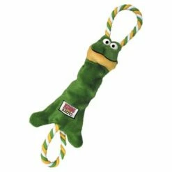 Uw hond houdt van stoeien en wil zijn krachten met u meten? Voor langdurige trekspelletjes is dit hoogwaardige speeltje van Kong uitstekend geschikt. Het is van robuust materiaal gemaakt en daardoor bijzonder stevig. De gevlochten koorden aan het uiteinde kunnen goed worden vastgepakt en zijn binnenin de kikker aan elkaar vastgeknoopt, zodat de lussen goed vastgemaakt zijn en er bij het spelen niet uitglijden.