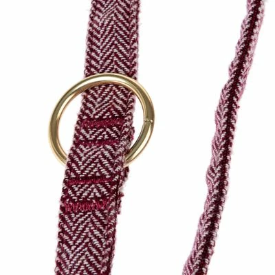 Hoogwaardige hondenriem, met metalen elementen in mat goud, in visgraat design, 3-voudig in lengte verstelbaar voor flexibel gebruik (lang model), gemaakt van polyester en nylon, kleur: burgundy (rood).
