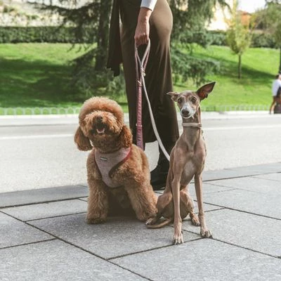 De hondenriem Nomad Tales Calma kenmerkt zich door een uitstekende weerstand zonder in te boeten aan stijl, een elegante burgundy kleur verfraaid met mat goudkleurige elementen en een visgraatpatroon. Hij is verkrijgbaar in twee varianten: 200 cm en verstelbaar of 120 cm met praktische handlus. Om een mooie look voor je hond te creëren, kun je de riem ook combineren met de bijpassende halsband of tuigje.