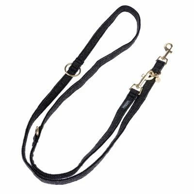 De 200 cm-variant van de riem heeft 2 karabijnhaken en 3 ringen om de lengte mee aan te passen