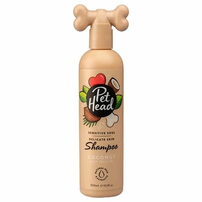 De reeks bevat shampoo, conditioner en spray met een lekkere kokosgeur. De verzorgingsproducten bevatten onder andere hydraterende havervlokkenextract als bron van vitamine B alsmede kalmerende goudsbloemextract. De huid en vacht van je hond worden zacht gereinigd en verzorgd. De producten bevatten enkel natuurlijke ingrediënten. Pet Head Sensitive Soul is vrij van parabenen, sulfaten, kleurstoffen en ook glutenvrij. De reeks is al geschikt voor jonge honden vanaf 8 weken. Praktisch: de producten zijn los verkrijgbaar, maar ook als complete, driedelige set.