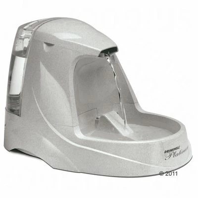 De PetSafe® Drinkwell® Platinum Drinkfontein heeft een mooi vormgegeven design en heeft dezelfde functies als de originele drinkfontein. Een vrije waterstroom zet uw dier aan om meer te drinken. Uw kat of hond wordt met voldoende vocht verzorgd en de gezondheid wordt bevorderd. Een drinkfontein wordt door veel dierenartsen aanbevolen, omdat het de kans op blaasgruis en urinesteenvorming kan verminderen!