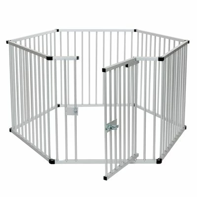 Zeshoekige puppy ren van roestvrij aluminium. Ideaal voor buiten & gemakkelijk te verplaatsen door laag gewicht. Op verschillende manieren op te bouwen, ideaal bij fokken van honden, kleur: zilver.