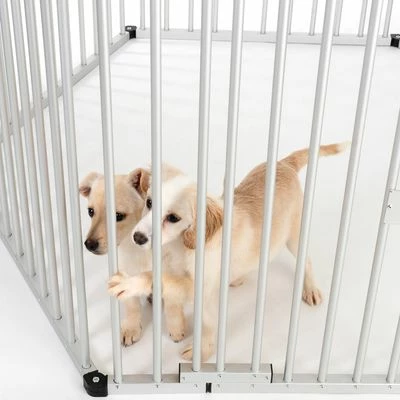 - Ideaal voor de fok van puppy’s: geeft pups de mogelijkheid samen buiten te spelen en de omgeving te ontdekken; beschermt actieve en nieuwsgierige viervoeters tegen gevaarlijke tochten alleen