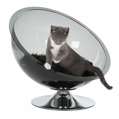 Katten en honden let op! Hier is de ultimatieve designer-stoel met grote acrylkom en verchroomde standvoet. De ronde ligkom is uit grijs, transparant acryl gemaakt en kan met pluche bekleding worden bekleed, die bij de levering is inbegrepen. Deze verhoogde zitplaats wordt beslist direct de nieuwe lievelingsplaats van uw huisdier.