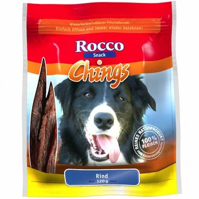 Rocco Chings worden uitsluitend uit vers vleesgeproduceerd – zonder vleesmeel, zonder vleesnevenproducten – en behoedzaam luchtgedroogd. Het kwalitatieve rundvlees is vetarm en bijzonder licht verteerbaar. Daarom zijn Rocco Chings ook voor honden met overgewicht of voor allergische honden perfect geschikt. Met Rocco Chings geeft u uw hond een knapperige lekkernij uit puur vlees, natuurlijk zonder kleur- conserverings- en aromastoffen.