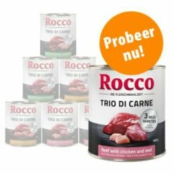 Rocco Trio di Carne: het bekende Rocco natvoer op basis voor rundvlees in combinatie met smaakvol gevogelte en een extra eiwitbron. Probeer nu alle soorten!
