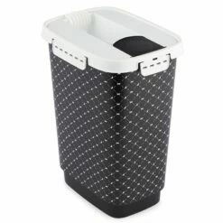 Droogvoer ton met schenkklep maakt doseren gemakkelijker Luchtdichte en lichtdichte afsluiting houdt voedsel vers en vermindert geurtjes. Kunststof. Afmetingen: L 24,3 x B 17,9 x H 32,2 cm, 10 liter