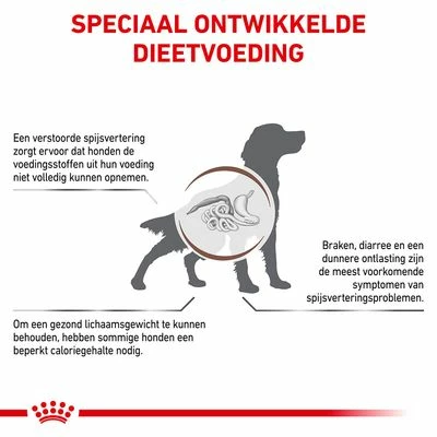 Royal Canin Veterinary – Gastro Intestinal Moderate Calorie is een dieetvoer voor volwassen honden met overgewicht, bij chronische & acute maag-darm-ziekten, gereduceerd energiegehalte