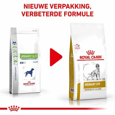 Honden neigen tot ziekten van de urinewegen, die ook tot de vorming van urinestenen (o.a. struviet en calciumoxalaat) kunnen leiden. Royal Canin Urinary S/O Moderate Calorie is een dieet droogvoer speciaal voor honden die tot overgewicht neigen. Ingezet wordt het voer ter behandeling van blaasontsteking van urinesteenziekten en helpt, bestaande struvietstenen / struvietkristallen op te lossen. Ook als profylaxe tegen urinestenen evenals ter behandeling van een bacteriële blaasontsteking is dit voer geschikt. Een aangepast energiegehalte helpt bij obesitas of bij de neiging tot overgewicht, om het ideale gewicht te behouden. Door de stijging van het urinevolume wordt de vorming van struviet- en calciumoxalaat tegengegaan. De RSS-waarde wordt bij dit voer laag gehouden, wat helpt om de struviet- en oxalaatkristal vormende ionen in de urine te reduceren. Een verhoging van urinevolume wordt eveneens bevorderd.