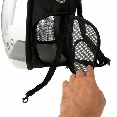 - Met panoramavenster vooraan: voor een goed zicht in en uit de rugzak, volledig te openen door middel van een ritssluiting