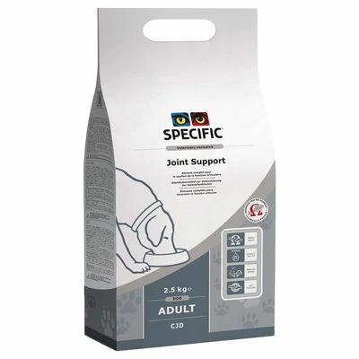 Specific Dog CJD – Joint Support is een dieetvoer speciaal voor volwassen en oudere honden met osteoartritis en andere gewrichtsproblemen of -ziekten. Ter ondersteuning van een gezonde gewrichtsfunctie en mobiliteit bevat dit voer een buitengewoon hoge concentratie aan omega-3-vetzuren, EPA & DHA, die bij ontstekingsreacties kunnen helpen. Deze zitten in visolie, waardoor diens nuttige effecten direct ter beschikking staan. EPA kan aan het behoud van gezonde gewrichten door reductie van de kraakbeenslijtage bijdragen. Vaak ontstaan gewrichtsziekten door overgewicht. Een gereduceerd energiegehalte evenals L-carnitine, dat de vetverbranding stimuleert en daarbij voor het behoud van de musculatuur zorgt, kunnen een optimaal gewichtsmanagement ondersteunen.