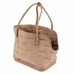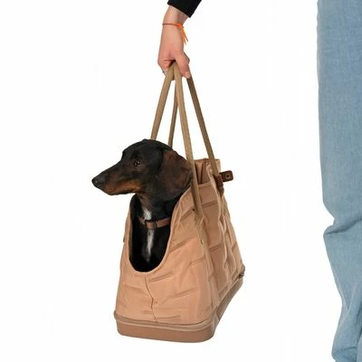 Doorgestikte draagtas voor kleine honden of puppy’s tot 5,5 kg, uitneembaar ligkussen, met bodemvak voor extra opbergruimte, korte riem met karabijnhaak, van polyester, kleur: beige/kaki