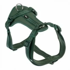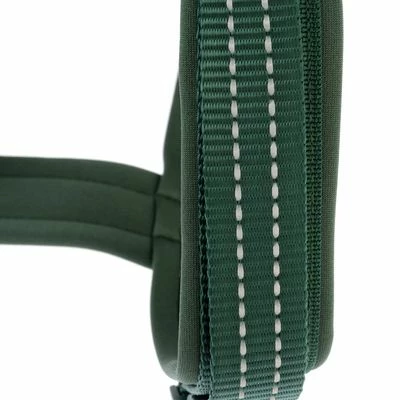 Het TIAKI groene neopreen harnas is zeer comfortabel dankzij zijn laag gewicht, Jouw hond zal het nauwelijks merken dat hij het draagt. Het is gemakkelijk aan en uit te trekken, omdat je de hond zijn poten niet hoeft op te tillen. Het heeft twee zij-gespen in de buikstreek. Door de grote halfronde ring aan de achterkant kan de riem snel worden vastgemaakt.