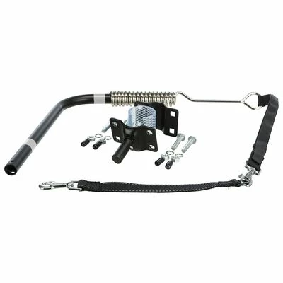 - Bevestiging van de expanderlijn met musketonhaken waarborgt een stevige sluiting, zodat de hond veilig aan de fiets meeloopt. Het klittenband aan de nylon lijn met behulp van de rubberen band omhoogsteken.
