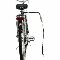 Afstandhouder voor kleine en middelgrote honden, voor veilig rijden op de fiets, met reflecterende strepen & lijn, voor zadelpen met Ø van 22-28 cm, gemaakt van verchroomd metaal.
