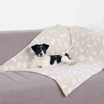 Knusse hondendeken. Wasbaar tot 60°C om huisstofmijt te doden. Geschikt voor mensen met een allergie. Te gebruiken aan beide kanten. Lief poot- en botmotief. Beschermt meubels. Kleur: blauw of beige.
