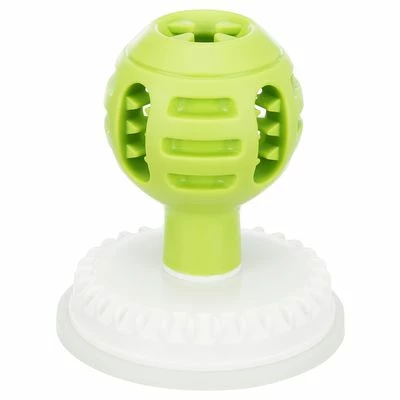 Het voordeel van dit intelligentiespeeldgoed is het feit dat je hond enerzijds voor langere tijd wordt beziggehouden en anderzijds dat het schrokken voorkomt. De ribbels aan de zijkant zijn ideaal voor leverworst of paté zodat je hond die eruit kan likken. Likken kalmeert je hond en kan helpen om hem na veel stoeien weer te laten ontspannen. Dankzij de zuignap kan dde Trixie Lick’n’Snack Ball eenvoudig op gladde ondergronden worden bevestigd.