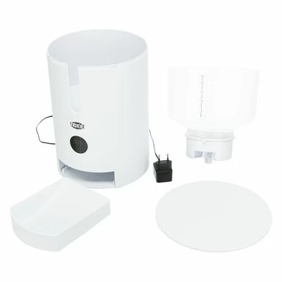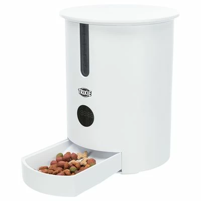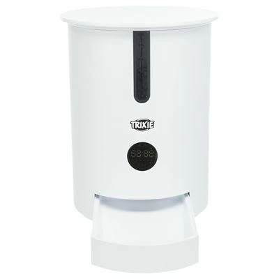 Met het moderne apparaat kun je tot zes maaltijden per dag programmeren en de hoeveelheid voedsel individueel instellen. Je hoeft de instelling maar één keer te maken, daarna wordt het voer automatisch dagelijks op de geprogrammeerde tijdstippen toegediend. De voerautomaat op netstroom is eenvoudig te bedienen via een touch display. Een weegschaal op de container helpt je om het vulniveau in de gaten te houden. In totaal kan de Trixie-voederautomaat tot 2,8 liter droogvoer bevatten. Ook het reinigen van de feeder is eenvoudig: de kom is vaatwasmachinebestendig.