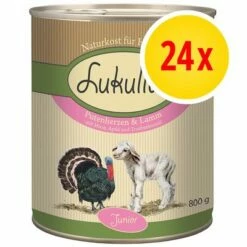 Ieder voordeelpakket Lukullus Junior bevat telkens 24 blikken à 800 g en is voor een gunstige voordeelprijd verkrijgbaar.