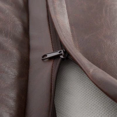 Het gladde oppervlak van het hoogwaardige bruine kunstleer is bijzonder zacht en heeft met zijn gemarmerde reliëfstructuur een antieke lederlook. Het kunstleer is natuurlijk geurneutraal en biedt optimale bescherming tegen mijten en vlooien.