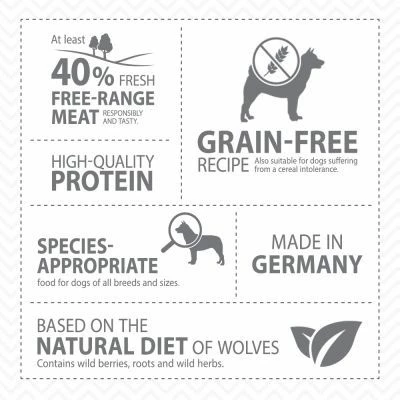 - Gericht op de voedingsgewoonten van de wolf in het wild: voor honden van alle rassen en grootten.